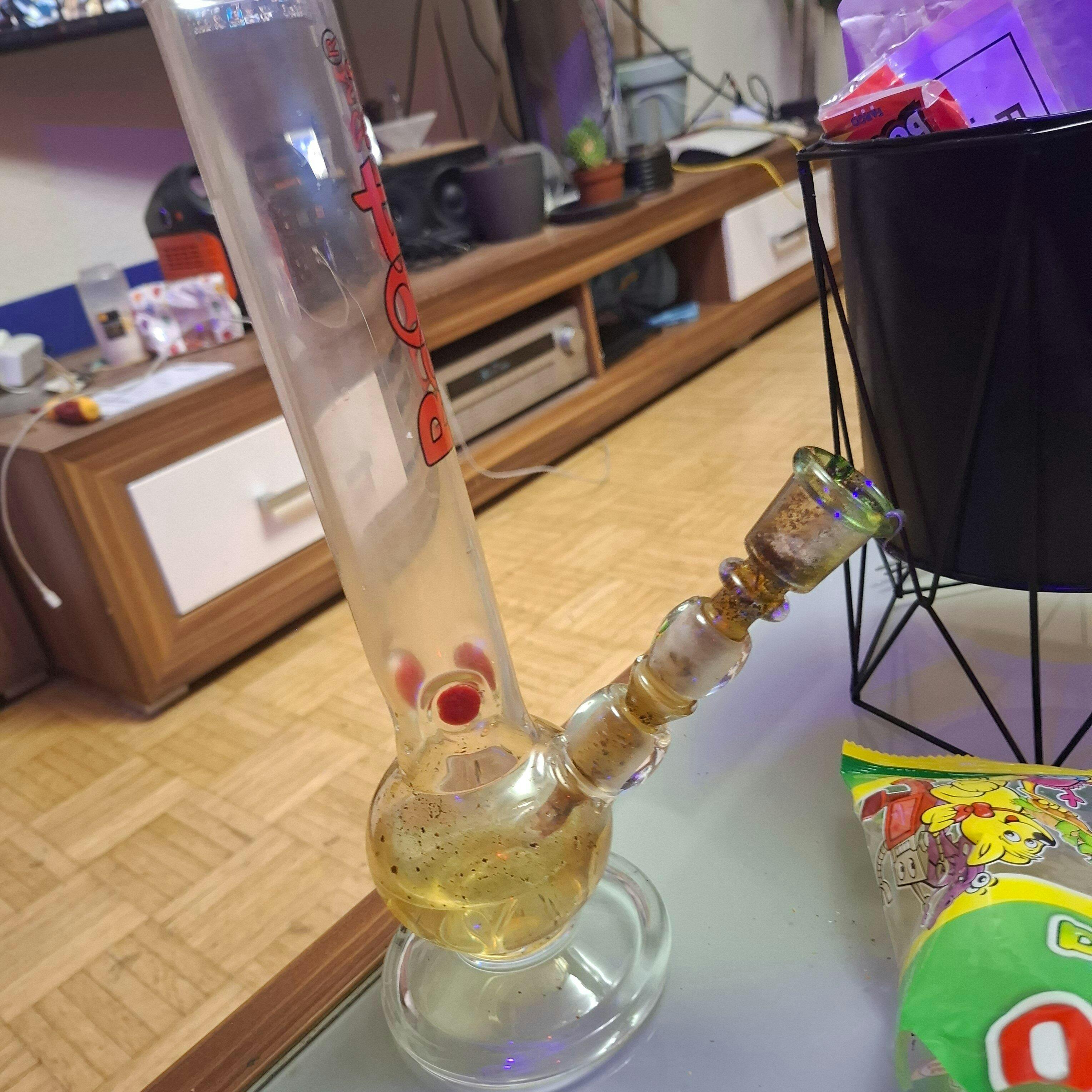 Diese 30 cm hohe Glasbong vereint schlichtes Design mit praktischer Ausstattung. Mit einem Chillum mit integriertem Glaskopf (Schliff 14,5 mm), Kickloch und Eisfach sorgt sie für ein angenehm kühles und intensives Raucherlebnis.